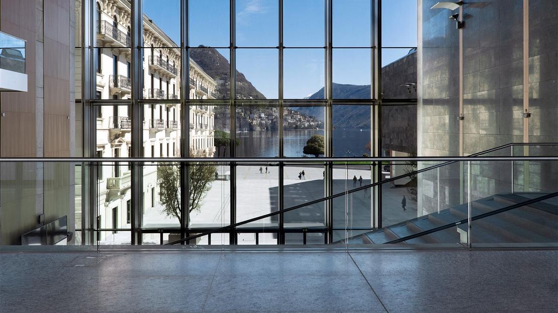 Il grandioso atrio è divenuto l’emblema stesso del LAC, l’immagine che più ricorre a rappresentarlo, perché sintetizza, in uno sguardo, il pensiero e gli obiettivi che hanno guidato questo progetto. Uno spazio monumentale che le pareti interamente vetrate offrono al pubblico senza barriere, in un contatto visivo immediato e continuo. Un invitante richiamo e insieme l’esatta realizzazione di quel desiderio di condivisione che pervade ogni attività del centro culturale. E allora non è strano che quella luce sembri riflettersi e diffondersi anche nelle altre aree del LAC, che da qui, tutte, sono collegate.